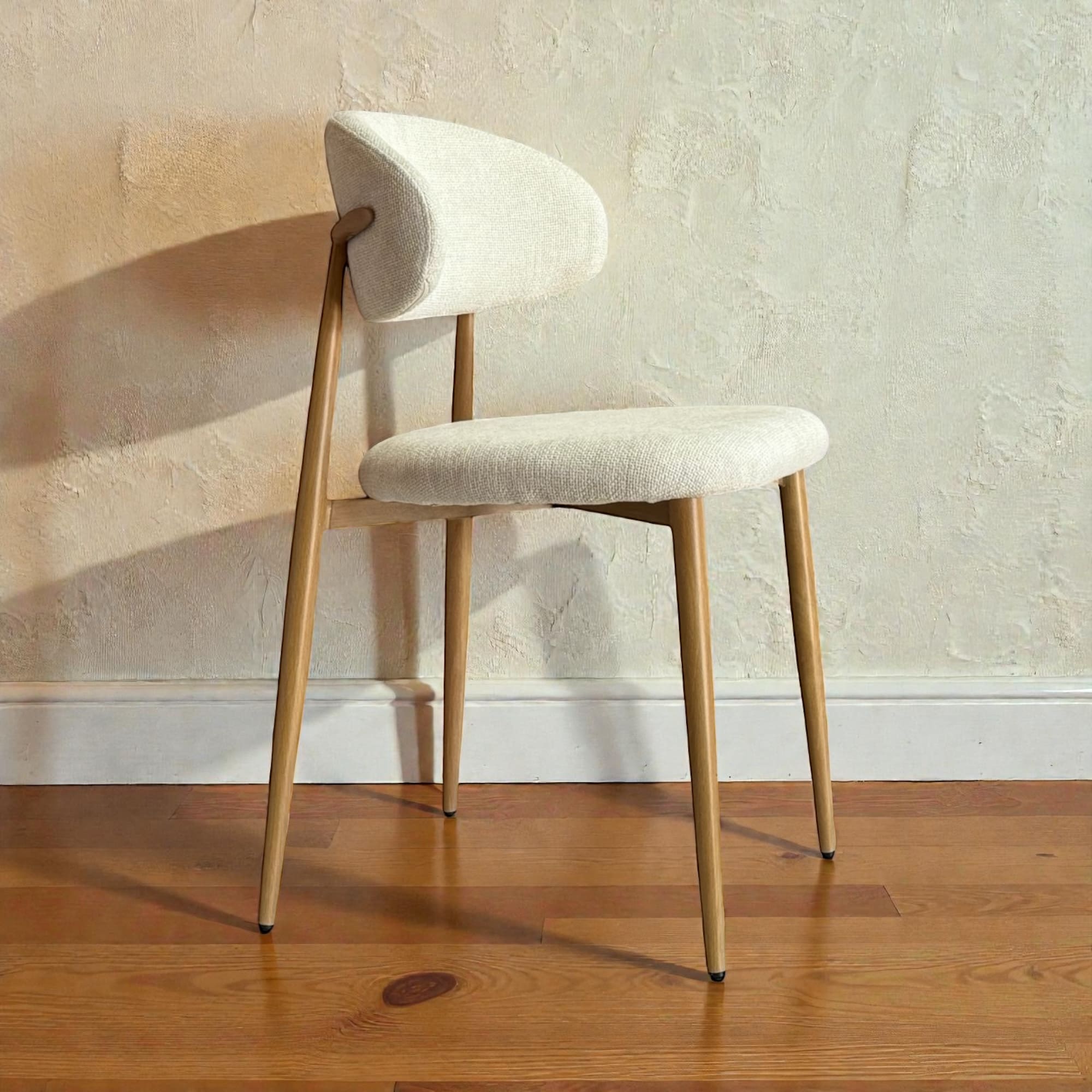 - Silla/Sillón Moderno color Roble Tapizado y Acolchado con respaldo curvado en color Beis, cómodo y de tejido grueso suave de tacto agradable y máxima comodidad.