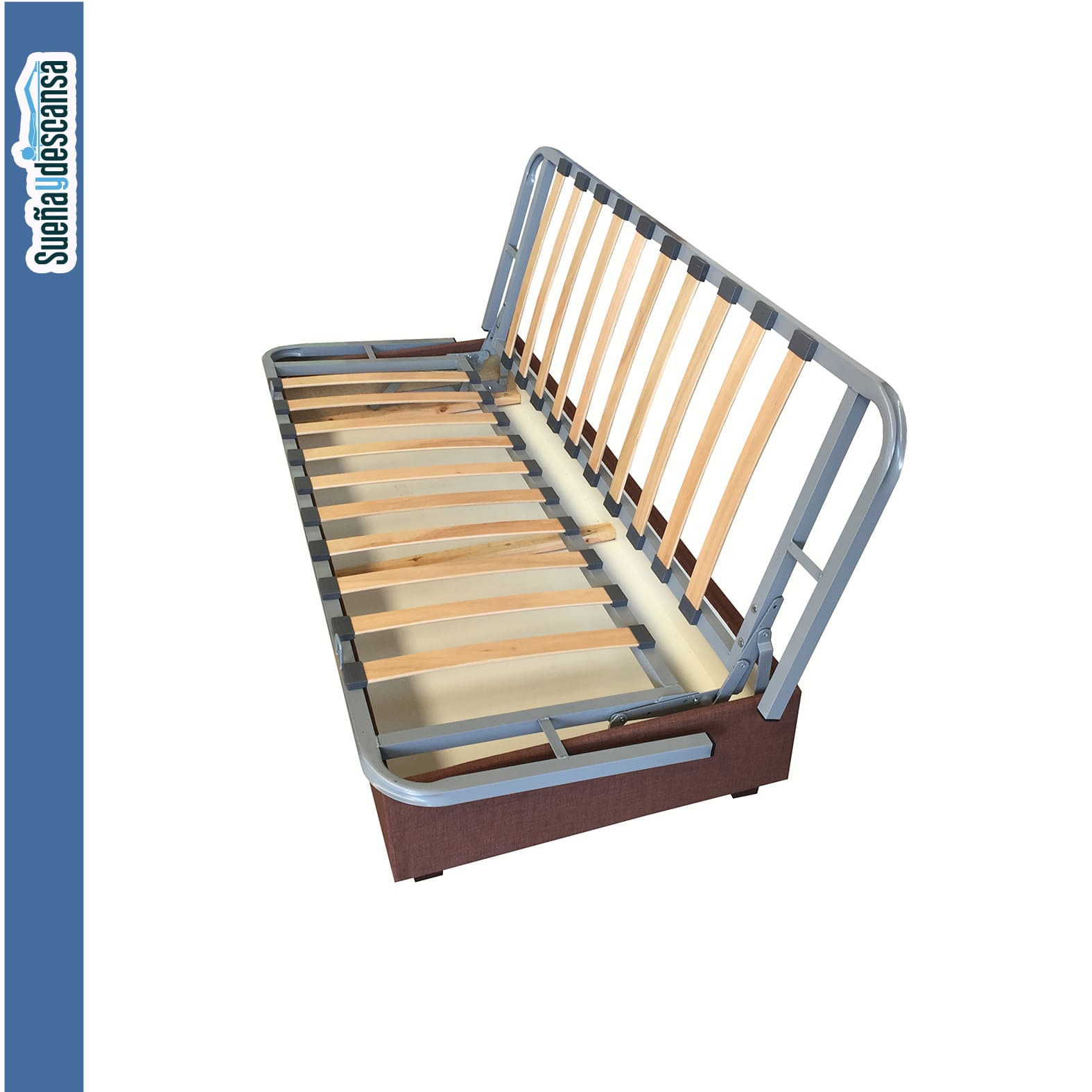 - La estructura de los somieres esta fabricada en tubo de acero resistente con patas de plástico. Cuenta con un sistema de apertura con dos bisagras automáticas tipo libro de fácil apertura.